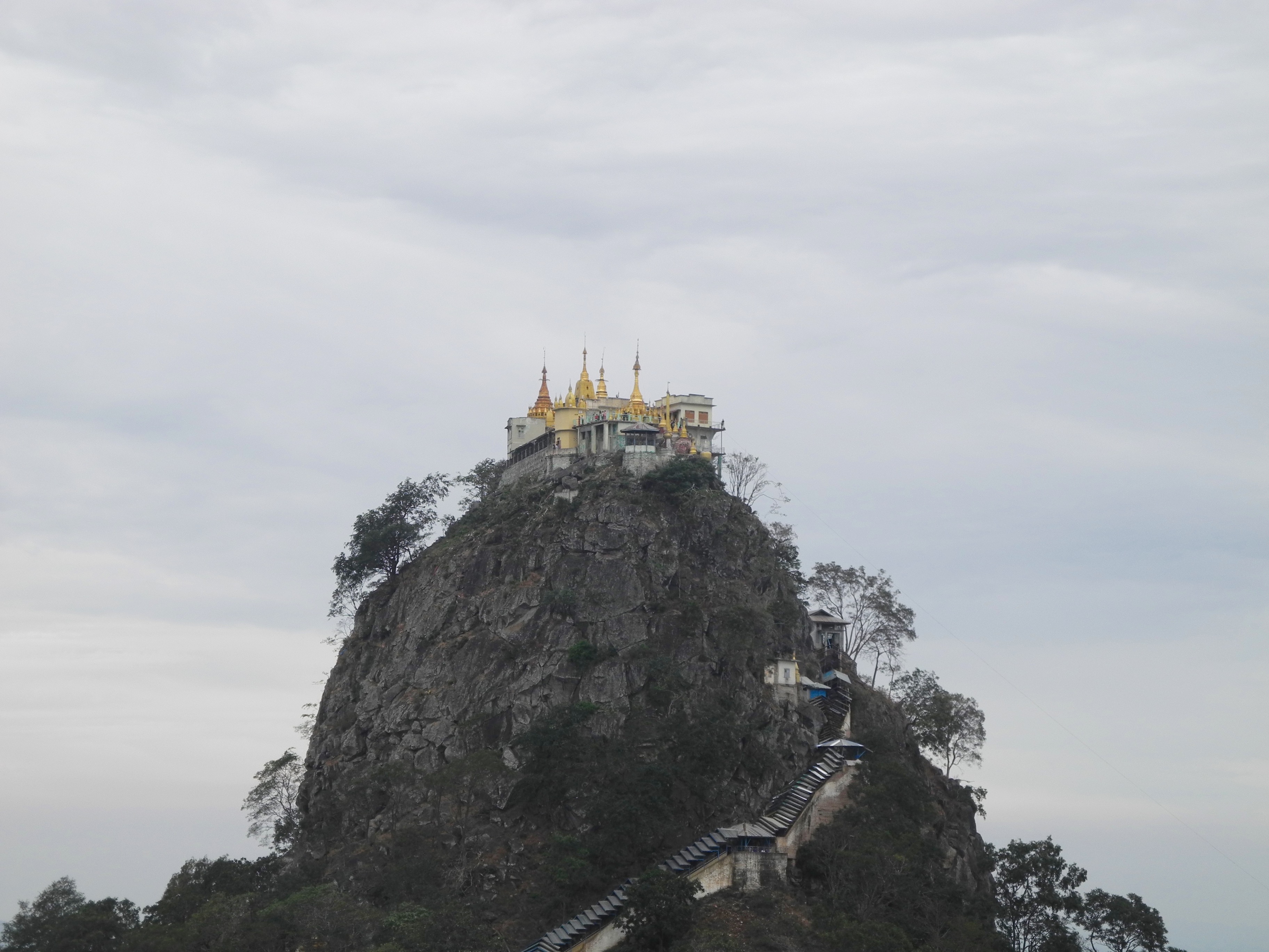 Die riesen Vorfreude auf den 320 $ teuren Ballonrundflug von 1 Stunde wurde am nächsten Morgen gedämpft durch leichten Nieselregen. Also Planänderung und zum Mount Popa in den Bergen. Taxi für 40.000 Kyats und los. Toller Ort, tolle Aussicht, aber für die 40.000 Kyats war’s nur bedingt prickelnd, aber es geht auch nur ein halber Tag drauf.