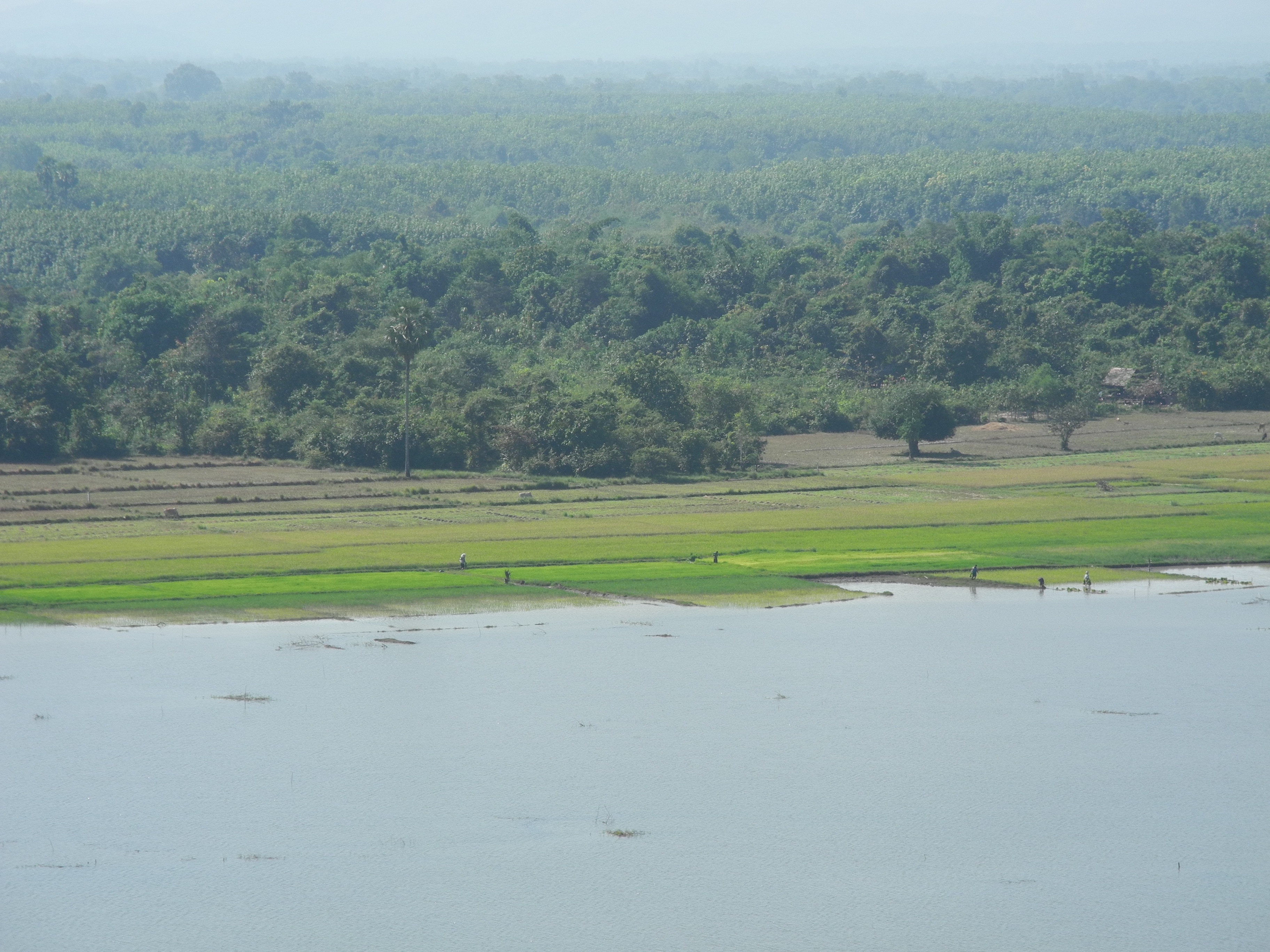 Der Weg führte über die INWA-Brücke Bei Sagaing dann wieder Richtung Norden nach Mingun. Tolle Strecke zu einem tollen Ort. In Mingun angekommen war dort ein brachial aufgebauter Felsbrocken aus Ziegelsteinen … Man konnte oben drauf gehen, welch eine Aussicht … Innen drinnen war nichts, außer ein kleiner Raum mit 1 Buddha.