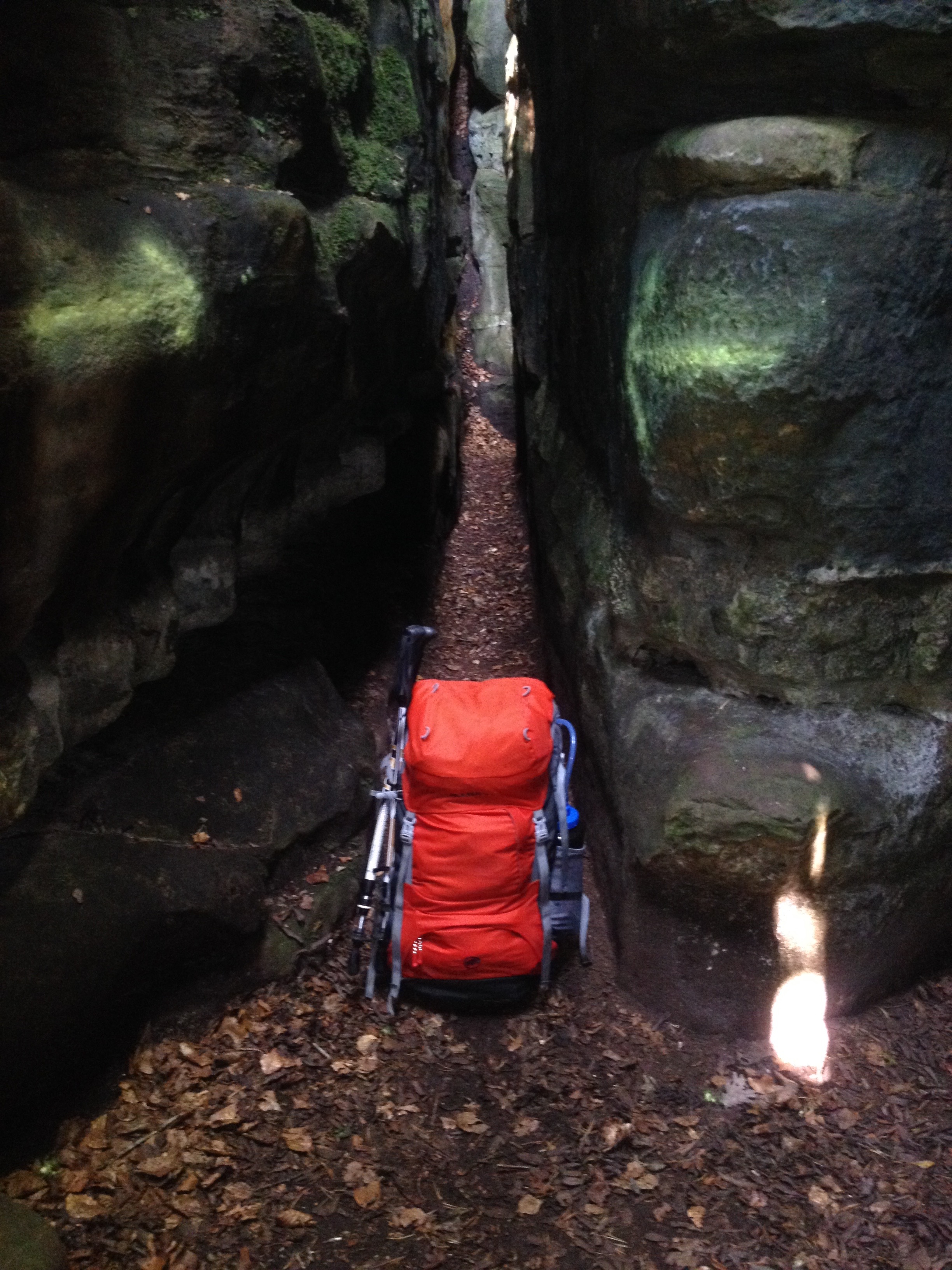 Vorbei an Goldkaul, Goldfralay, Eulenburg sowie Schelmelay und Ramelay. Dies sind die Namen einiger Felsen, an denen diese Tour vorbei führt. Die eigentümlichen Namen gehen häufig auf Mythen und Sagen zurück. Durch die Verwitterungsprozesse sehen die Sandsteinfelsen teilweise wie skurrile Figuren oder Gesichter aus. Nun gilt es sich durch enge Gänge zu zwängen, der erste davon ist der Rittergang.