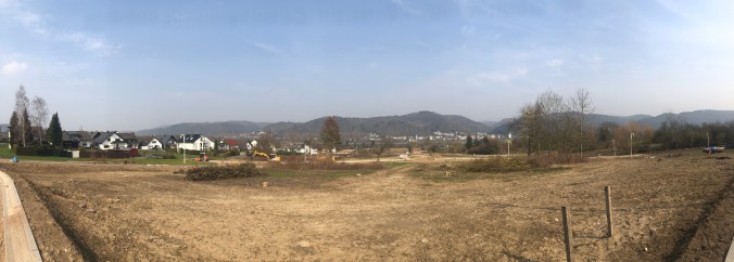 In dem Tal gibt es ein Vereinsheim und Sportplätze. Auch von hier aus könnte man die Tour beenden, in dem man einfach links Richtung Rhein das Tal verlässt. So kommt man auch nach Brey rein. Dadurch würde man halt nur die Römische Wasserleitung verpassen.