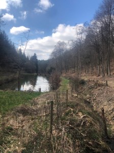 Hier wurde an dem Tag der Weg gerade neu gemacht und es daher ein kleines bisschen rau zu begehen. Der Weg war matschig und nicht ganz eben. Er führte in ein super schönes Tal hinein. Leider kann ich den Namen des Tals nicht sagen, aber der Bach nennt sich Bach von Langschied. Auf dem Weg in den oberen Teil des Tals komme ich an Fischteichen vorbei.