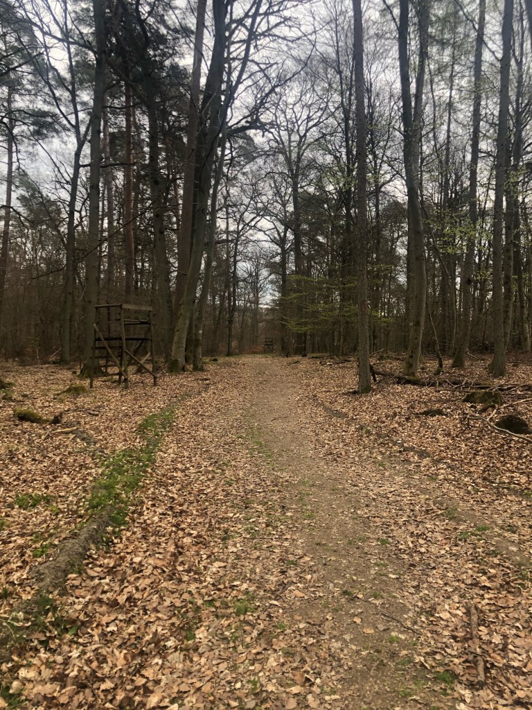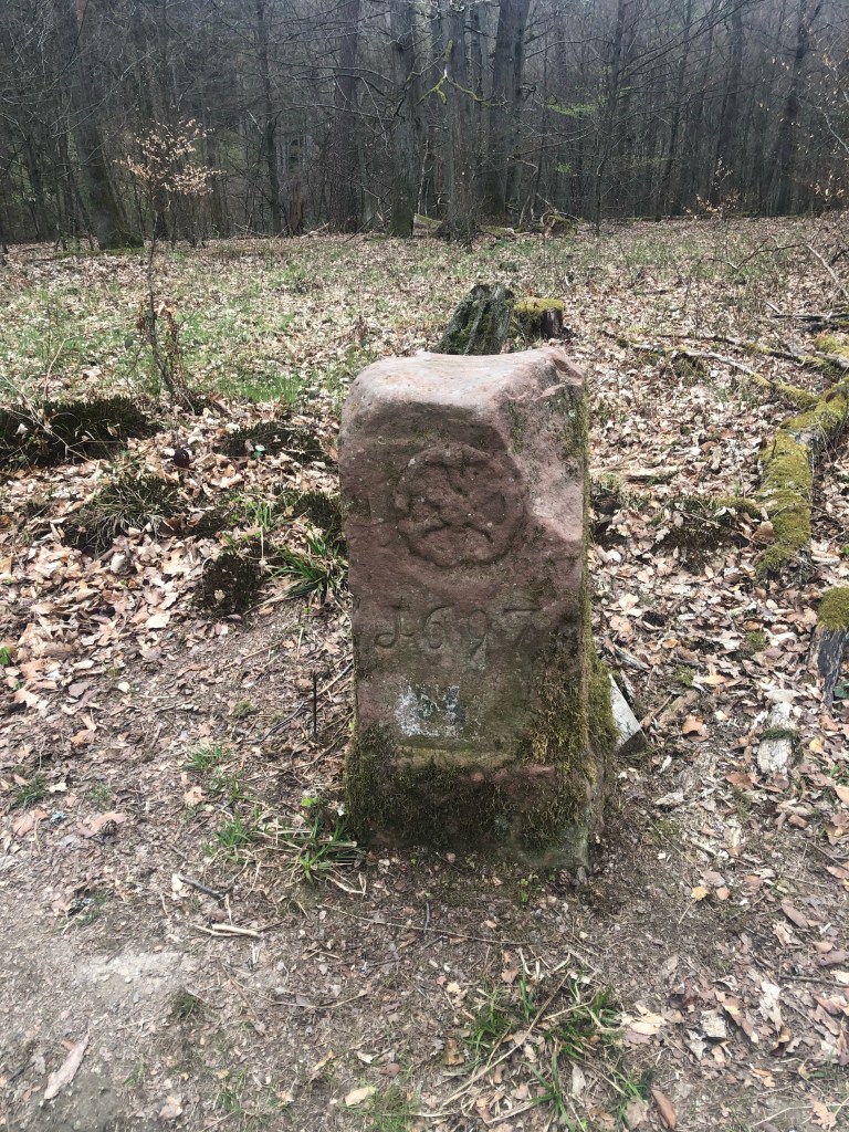 Am Ende des Trails biegt der Weg rechts ab – hier mitten an einer Kreuzung befindet sich ein Grenzstein mit der Aufschrift J697 leider lässt sich nicht mehr herausfinden warum der Stein dort steht oder wozu er gehört. Nach dem Blick auf Google Maps zeigt mir, dass ich hier bereits an der Grenze von Hessen zu Rheinland-Pfalz bin.
