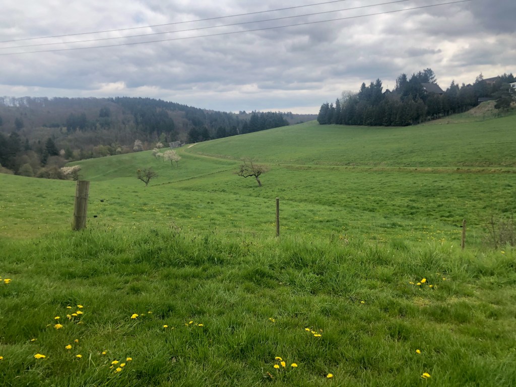 Nachdem ich das Tal halb durchquert habe, komme ich erneut an eine Bundesstraße. Es ist die Verbindung zwischen Wollmerschied und Ransel. Hier laufe ich links von dem Tal bergauf. Am Ende des Tales wechsle ich die Seite, und wandere auf der rechten Seite des Tales wieder hinunter, dies ist auch die Seite, die dem Sportplatz zugewandt ist.
