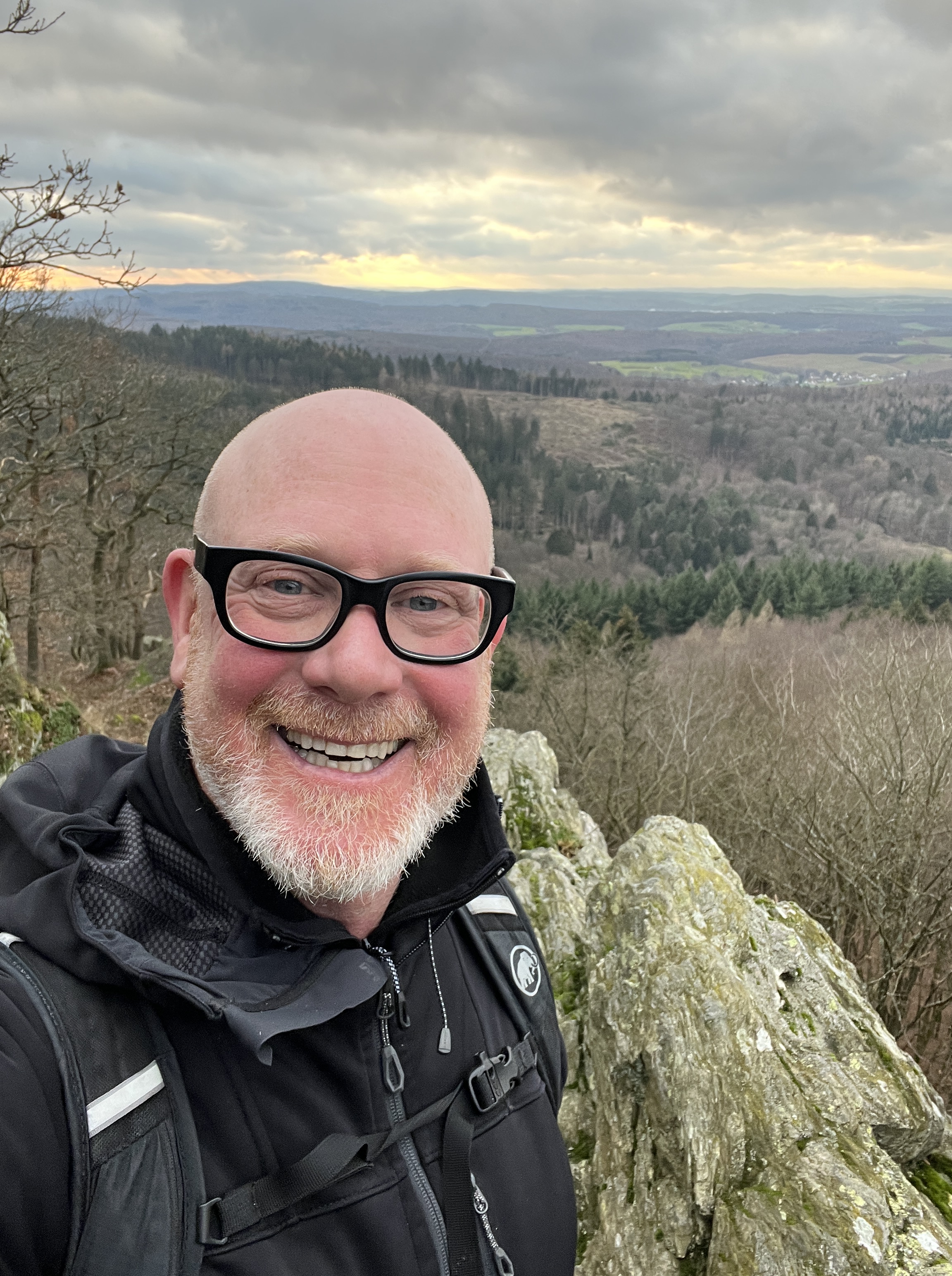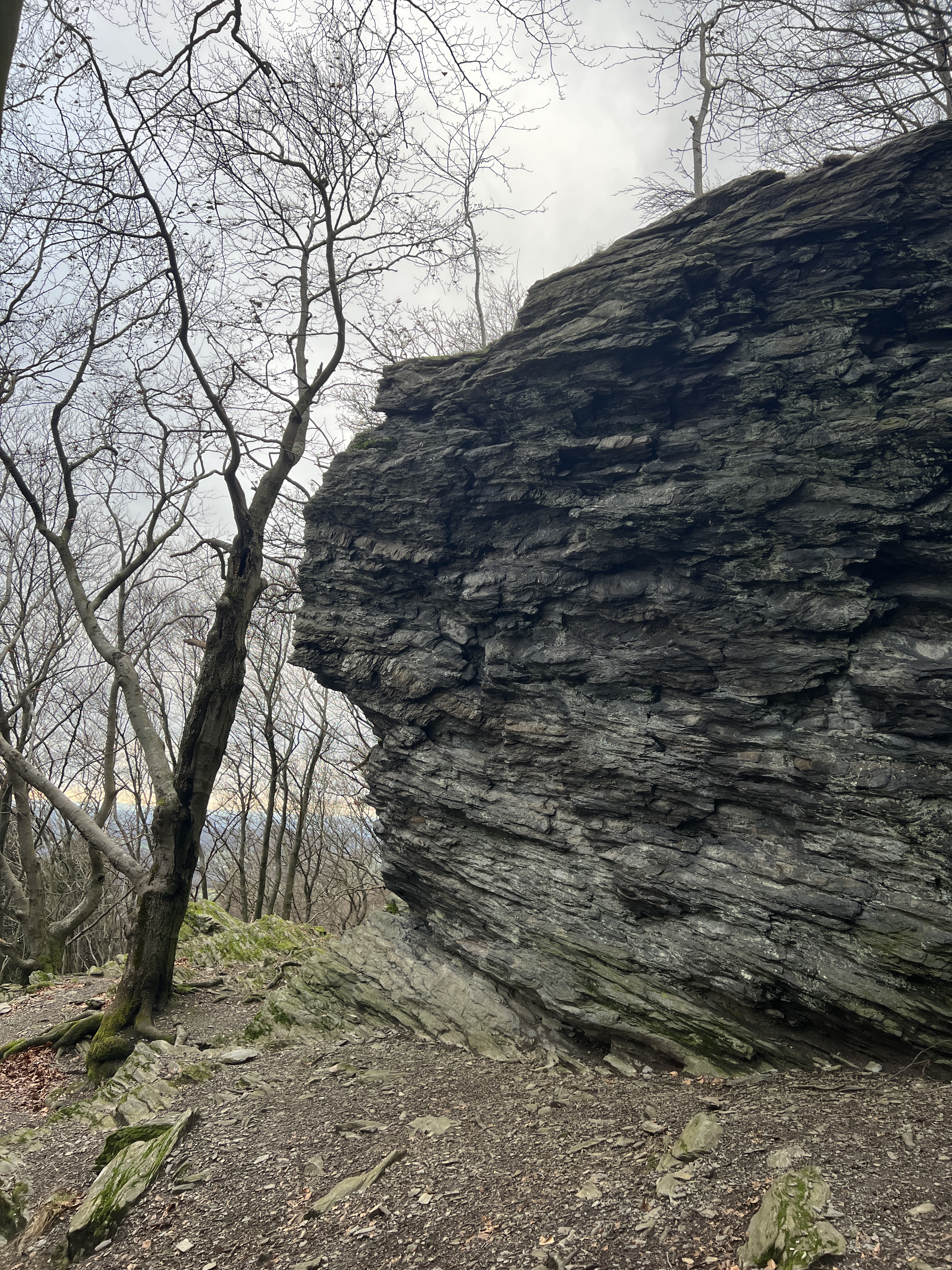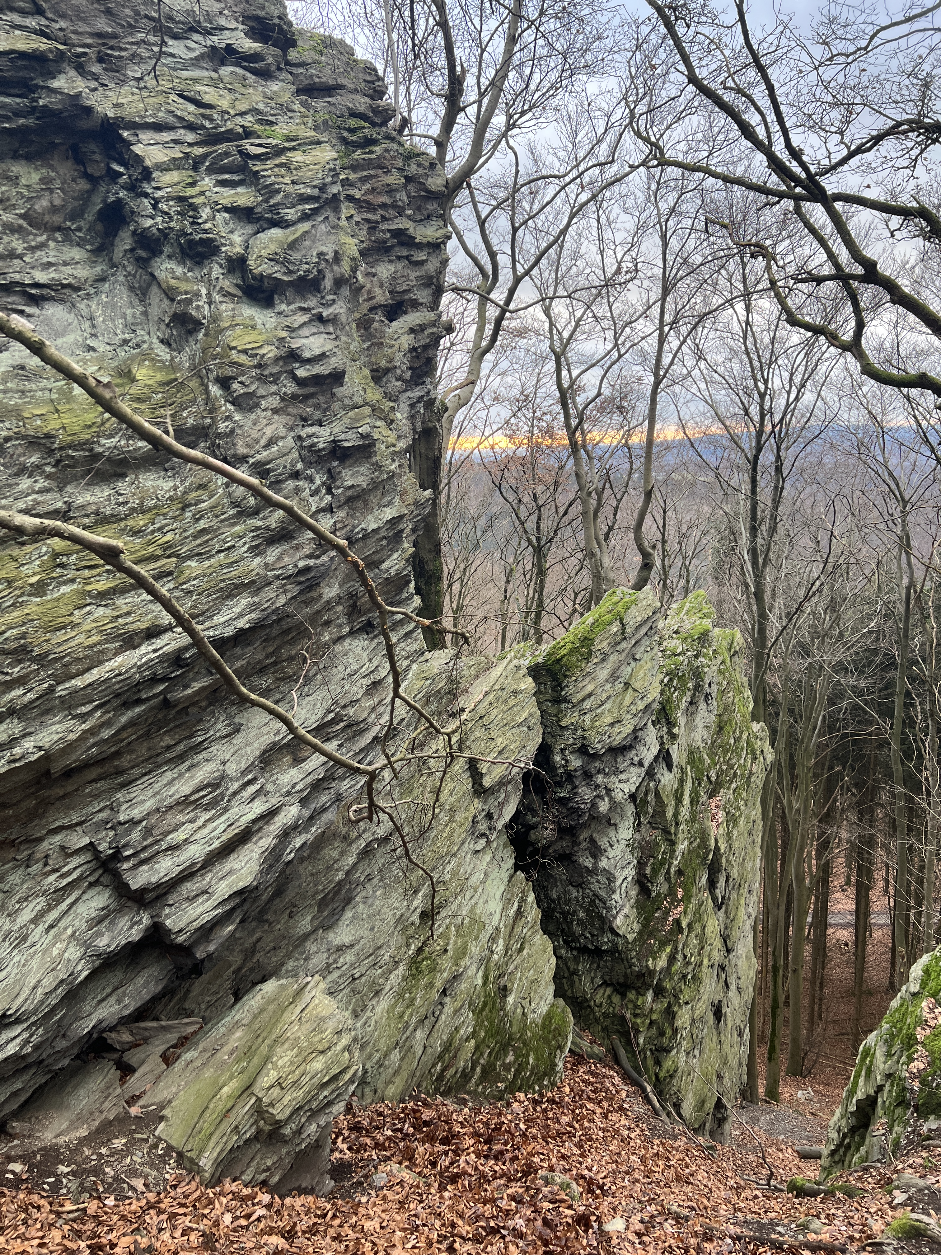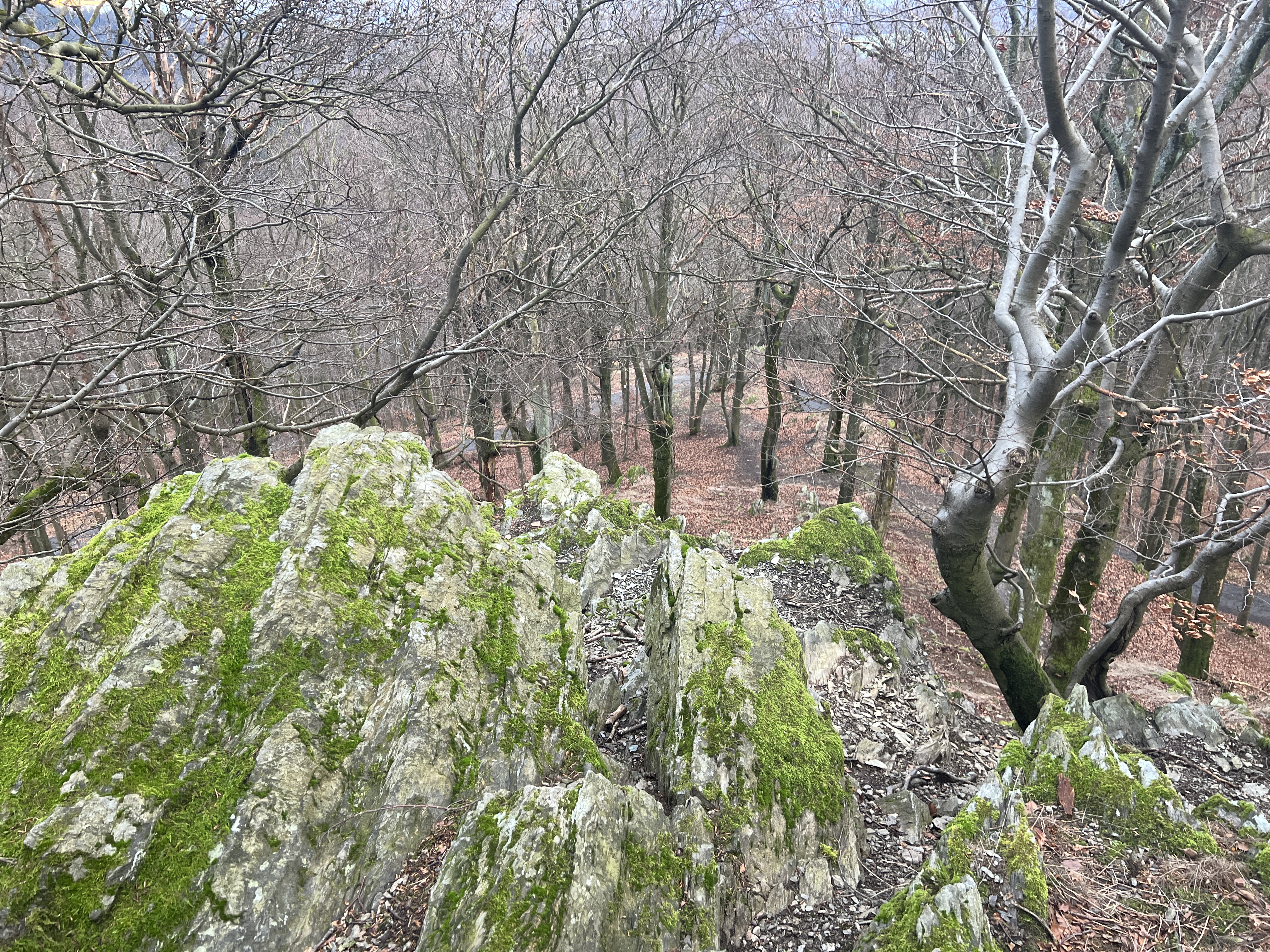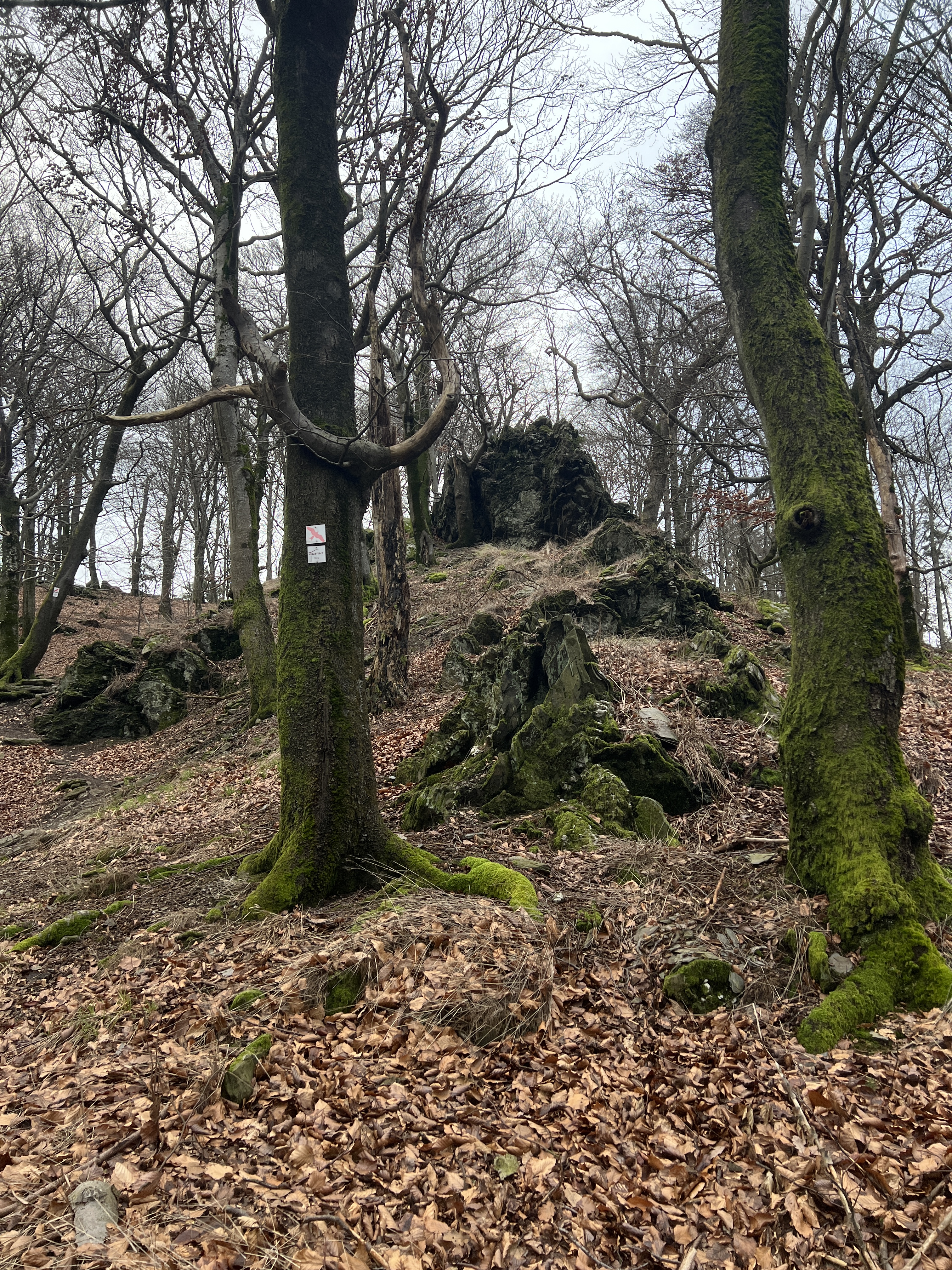 Wenig später komme ich dann auch am grossen Zacken vorbei, es geht für mich wieder steil nach oben – krass die Felsen hier mitten im Wald. Toll!! Von oben habe ich einen genialen Ausblick in den Taunus. Zwar ist heute das Wetter etwas bedeckt, aber der Blick ist schon klasse.