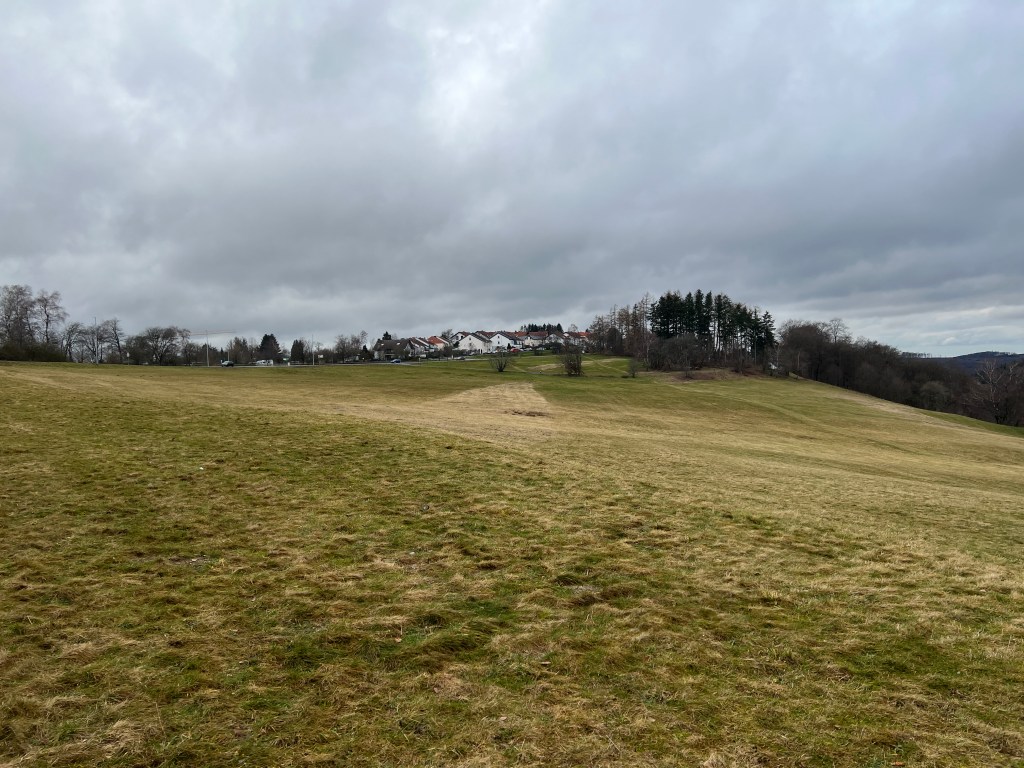 Hier gibt es zwei Parkplätze, der direkt am Gasthaus und einer, der ein kleines bisschen tiefer Richtung Oberreifenberg liegt. Hier stelle ich mein Fahrzeug ab und starte die Wanderung in Richtung Oberreifenberg. Wenig später laufe ich durch Wiesen unterhalb des Berges entlang und komme an dem Tagungshotel Ta-Taa! direkt an der Rodelpiste des Feldweges entlang.