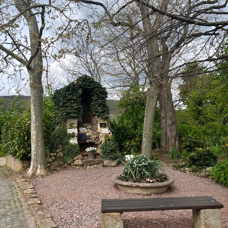 Nach einiger zeit komme ich in den Weinbergen heraus und durchquere diese. Bis ich nach dem Rastplatz Lagenstein und dem Hahenböhler Kreuz an der Madonna ankomme.