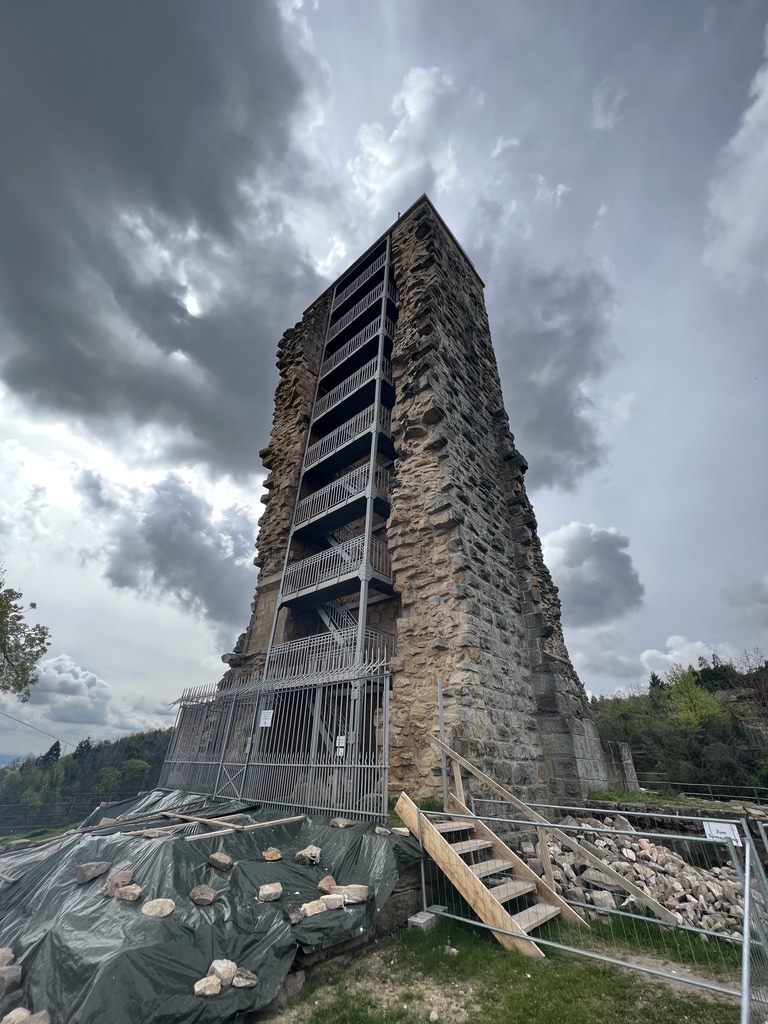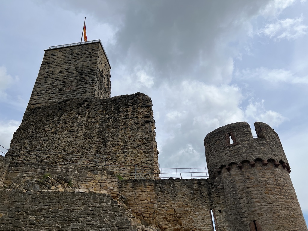 Da ich erst gestartet bin, wäre eine Rast noch zu früh und ich ziehe weiter, nachdem ich den Burgturm bestiegen habe, und die Aussicht genossen habe. Die Aussicht hier oben ist echt toll, und der Rotkohlgeruch zieht hier oben auch noch intensiver in meine Nase 🙂