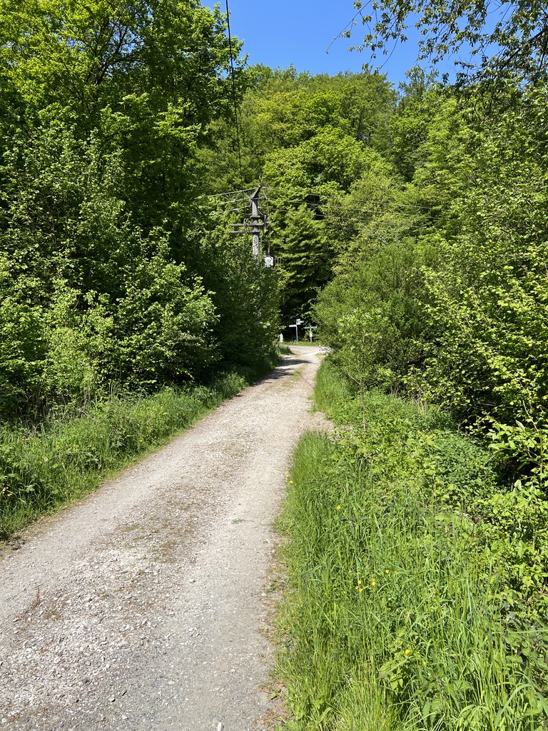 Auf der Höhe des Schildes Wanderparkplatz, gehe ich links ab nach oben, dort finde ich auch wieder die Beschilderung – ich muss irgendwo ein Schild übersehen haben.