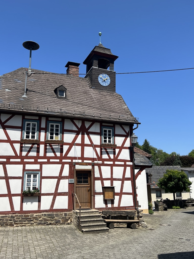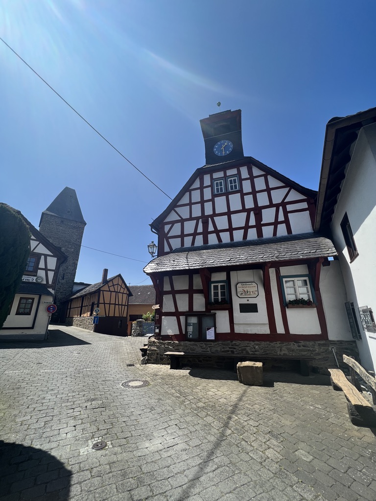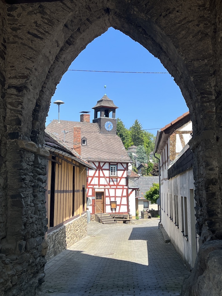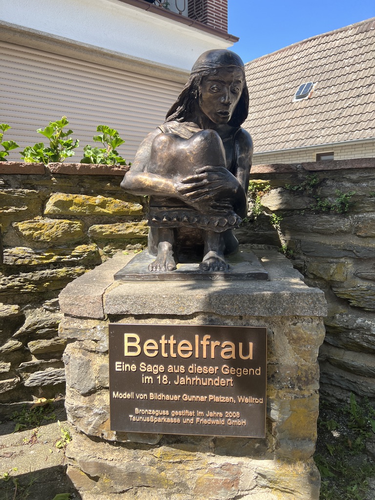In Altweilnau angekommen, gehe ich in das Zentrum nach oben, hier sitzt einer Bronzestatue, die sogannte „Bettelfrau“ direkt neben einem wunderschönen Fachwerkhaus, wahrscheinlich dem ehemaligen Rathaus des Dorfes.