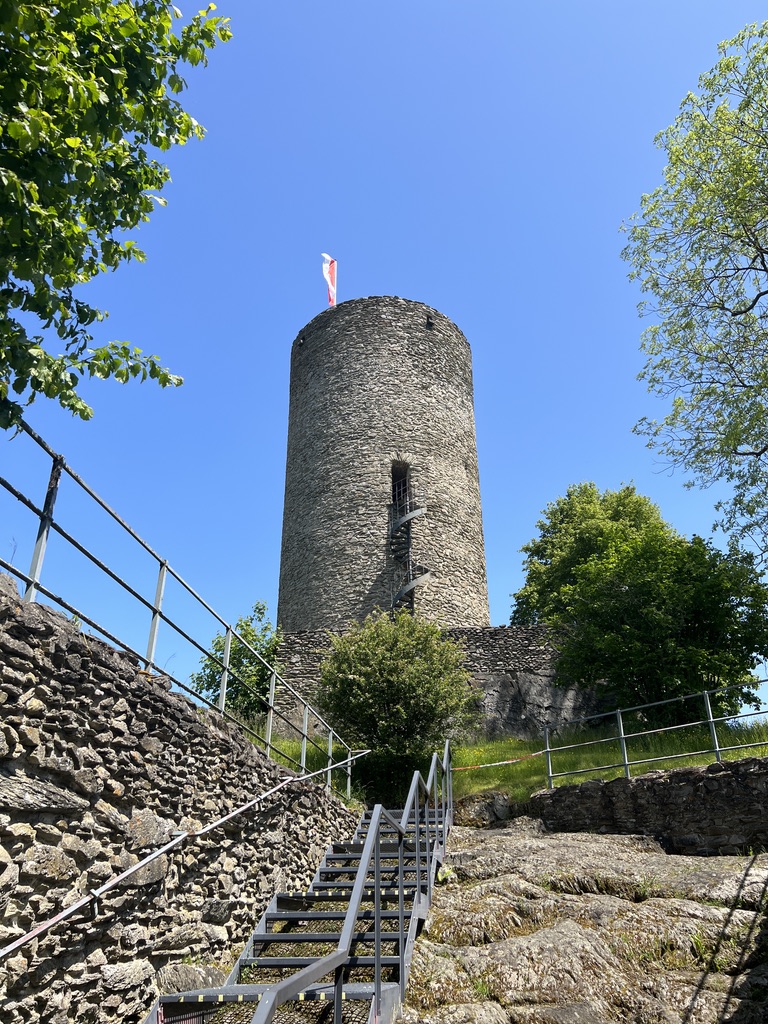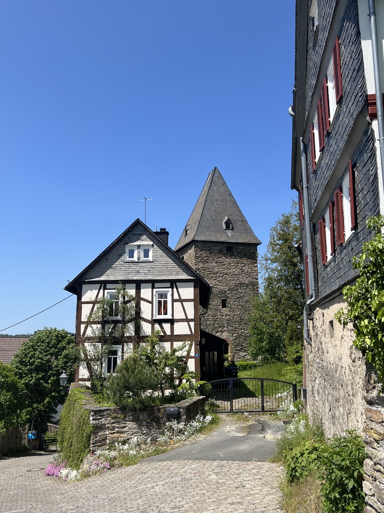 Im weiteren Verlauf sieht man im Zentrum den Turm Nummer 2, ein Torturm, durch den man hindurch zur Burgruine Altweilnau kommt. In der Burgruine steht ebenfalls ein Turm, den man besichtigen kann, von hier hat man einen wunderschönen Rund-um-Blick auf Neuweilnau und Altweilnau. Die Burg Altweilnau wurde um 1200 von den Grafen von Diez erbaut.