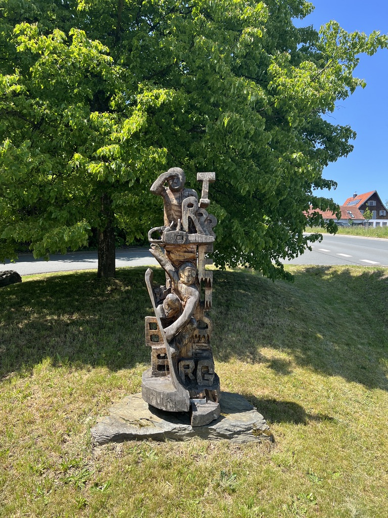 Nach einer kurzen Pause und einer kleinen Rast geht es für mich weiter Richtung Treisberg, am Ortseingang steht links eine schöne Holzschnitzerei, in der Buskehre. Im weiteren Verlauf geht es für mich links ab Richtung Pferdskopfberg, vorbei an Taunus-holz.de.