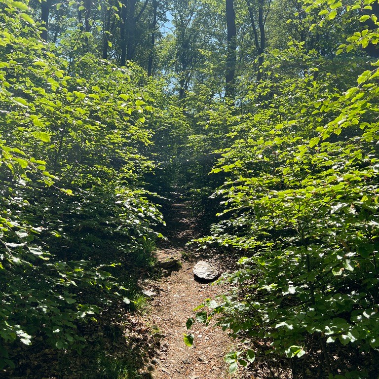 Der Weg führt durch einen schönen Wald, hier kommt mir keine Menschenseele entgegen, ich bin hier ganz alleine. In der Ferne hört man die Motorräder auf der Taunushöhenstraße fahren, aber der dichte Wald dämpft den Lärm etwas ab.