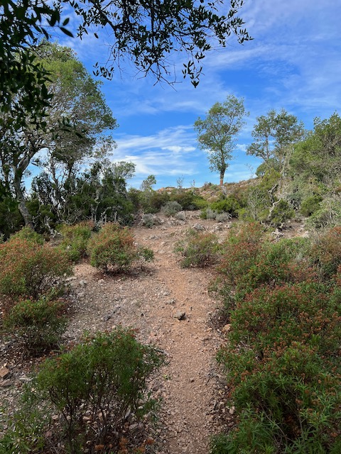 Von hier geht der Weg erst einmal Steilberg auf, bis ich auf den Gipfel des Punta Lintner komme. Hier oben hat man einen tollen rund um Blick über die Insel, hier findet ihr ein Wegweiser, der euch nach Girolata/Gáleria leitet. Ich folge den Wegweiser nach Girolata und gebe geh über den Bergkamm.