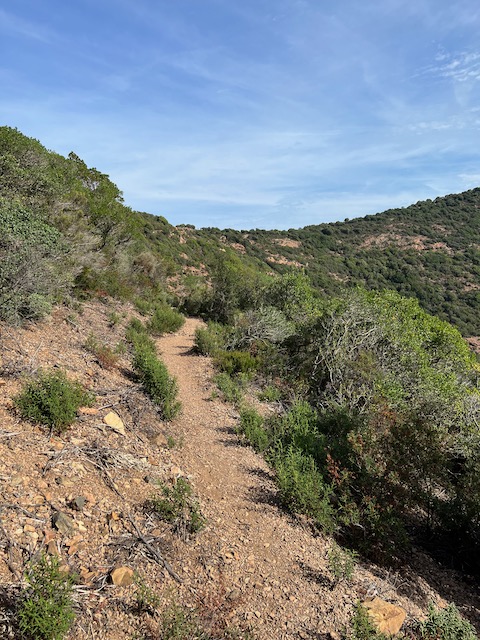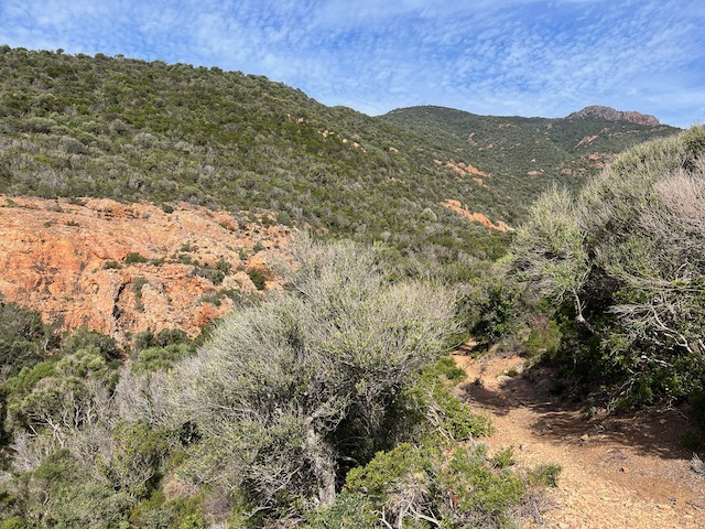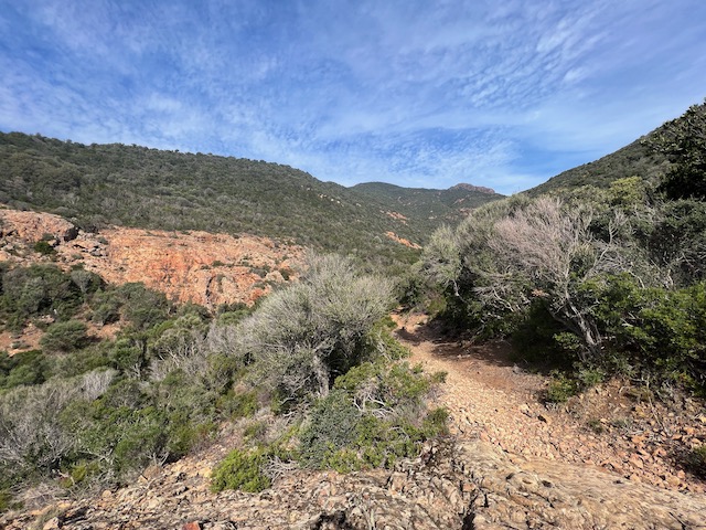 Hier halte ich mich nach links und gehe am Berghang oberhalb eines Tales Ravin des Cavone Richtung Ort Girolata.