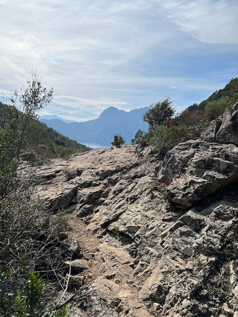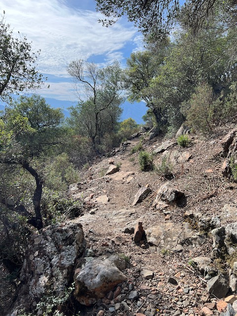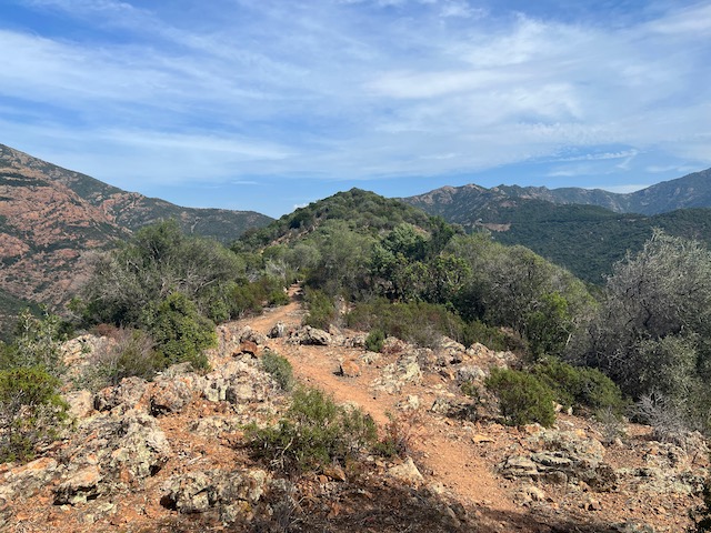 Eine weitere Kreuzung wird euch im Verlaufe des Aufstieges noch einmal nach links ab fordern. An der Kreuzung CROCE GITOLATA auf dem BOCCA DI PALMATELLU biegt ihr noch einmal links ab, und geht dann über den Berg Rücken, Richtung Straße nach oben.