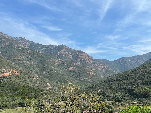 Girolata kommt immer weiter in Sichtweise, man sieht das vor und auch den Hafen. Auf der Höhe eines Häuschens, auf dem Berg Gipfel, Bocca di fuata, auf dessen Dach einen Solarpaneel sitzt, geht es Berg ab in das Naturschutzgebiet hinein.