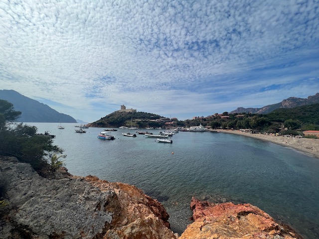 Der weitere Weg geht am Ende der Bucht nach oben, hier gibt es auch für die Touristen, die mit den Booten anreisen. Ein paar nette Aussichtspunkte, haltet euch auf jeden Fall bei dem Aufgang auf den Berg, etwas nach links, hier kommt ihr auch an dem kleinen Friedhof von Girolata vorbei. Folgt immer weiter dem Weg über Cimetière de Girolata, dann kommt ihr immer wieder richtig an.