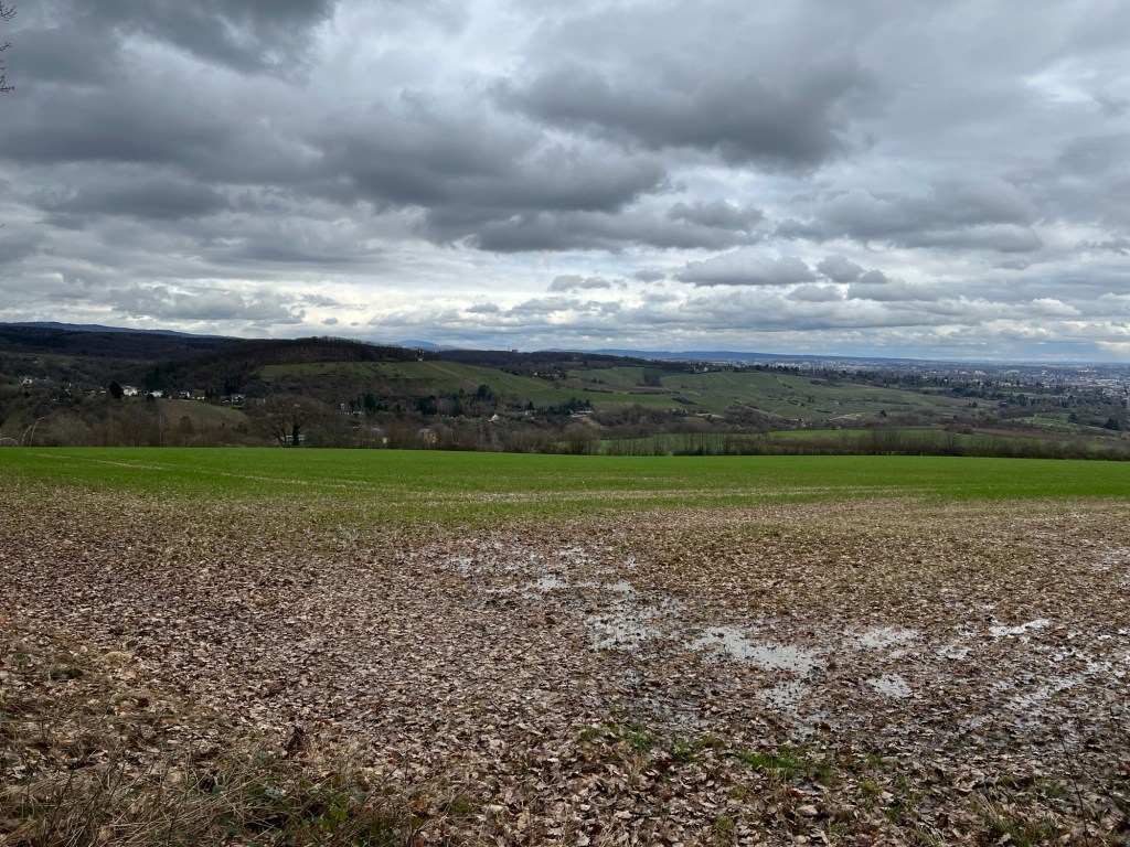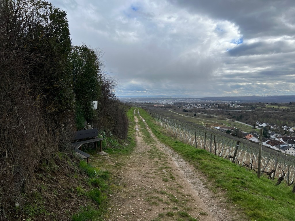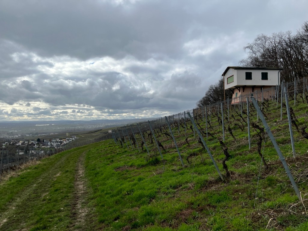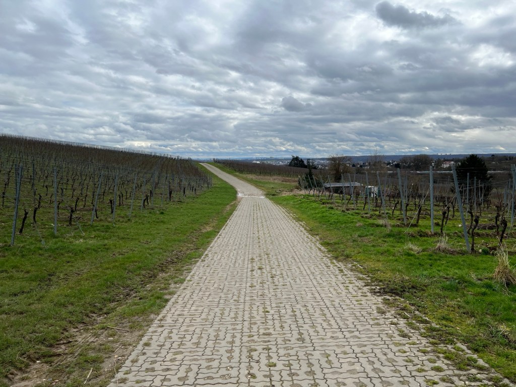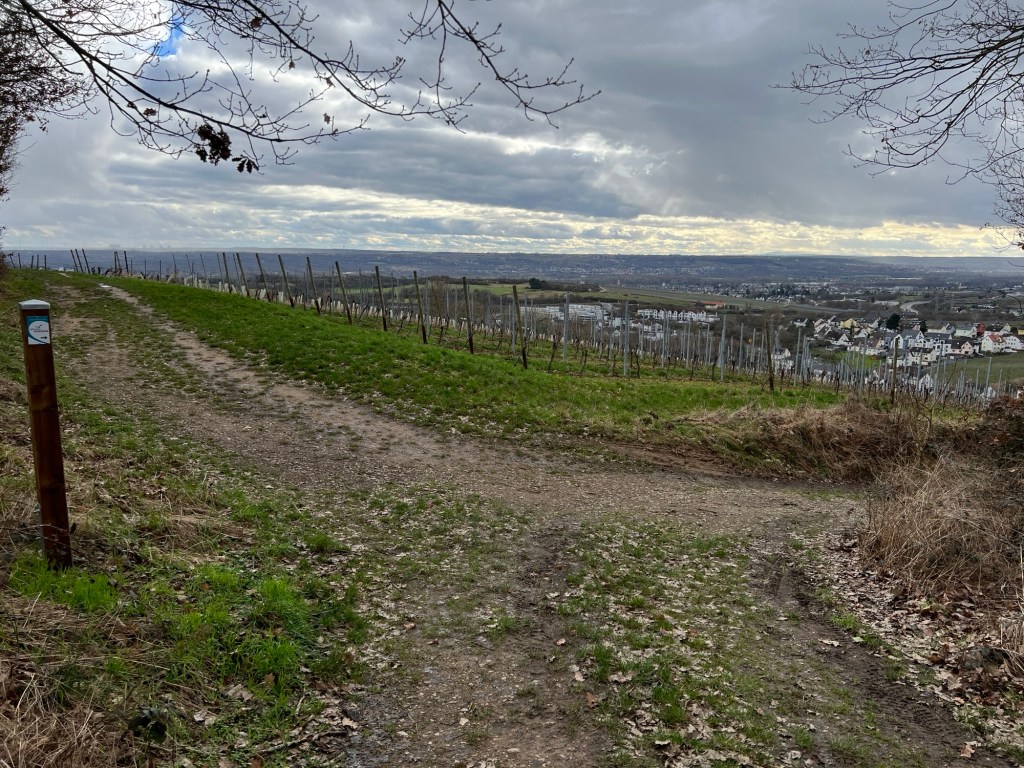 Ich bin gespannt, wie lange ich hier noch auf dem Matschweg auf der Höhe von dem Weinberghäuschen wieder nach Westen laufen muss, um dann wieder durch die Weinberge nach unten Richtung Martinsthal zu kommen.