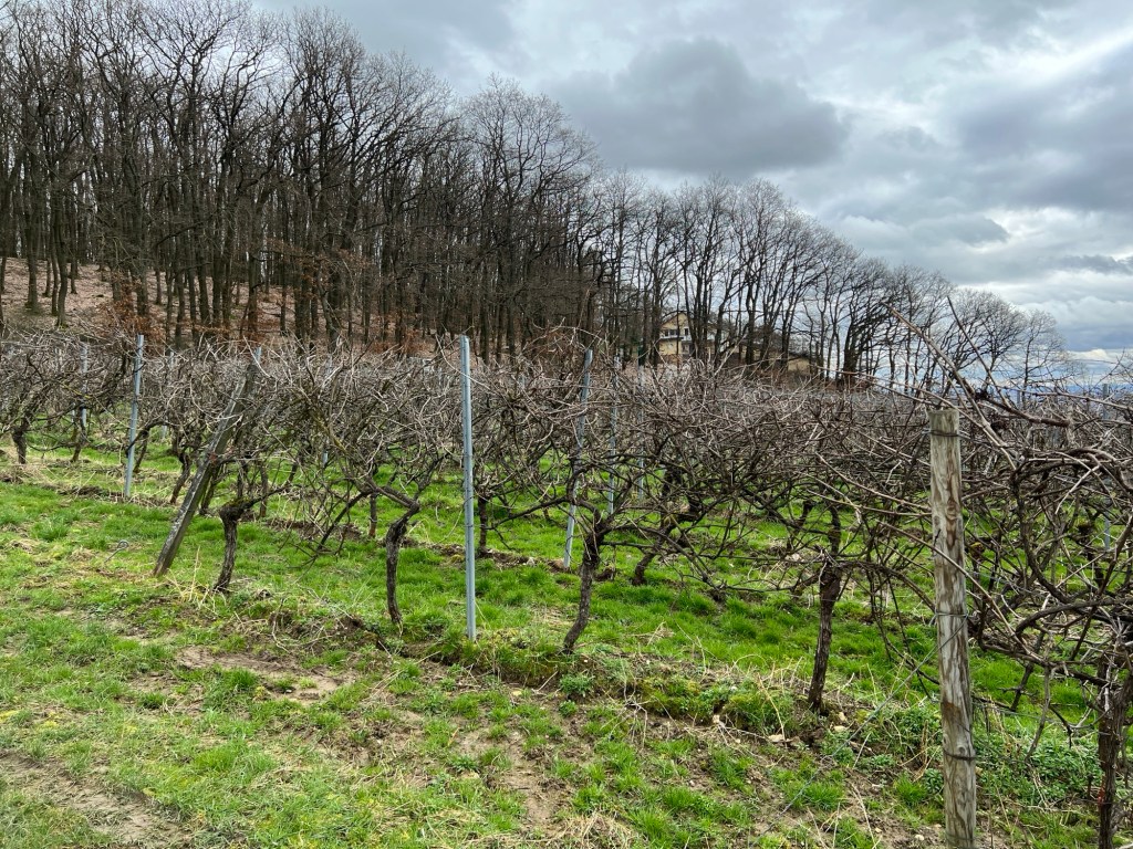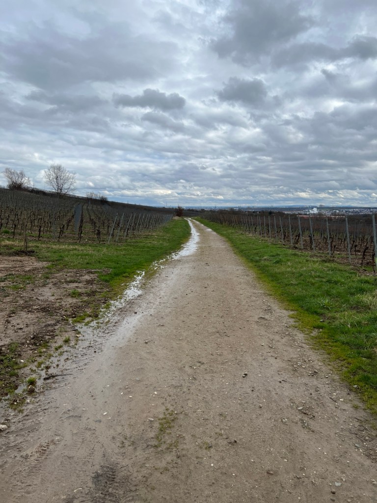 Der Weg bahnt sich so in die Weinberge nach oben, heute etwas matschiger unterwe, denn es hat heute Nacht geregnet.