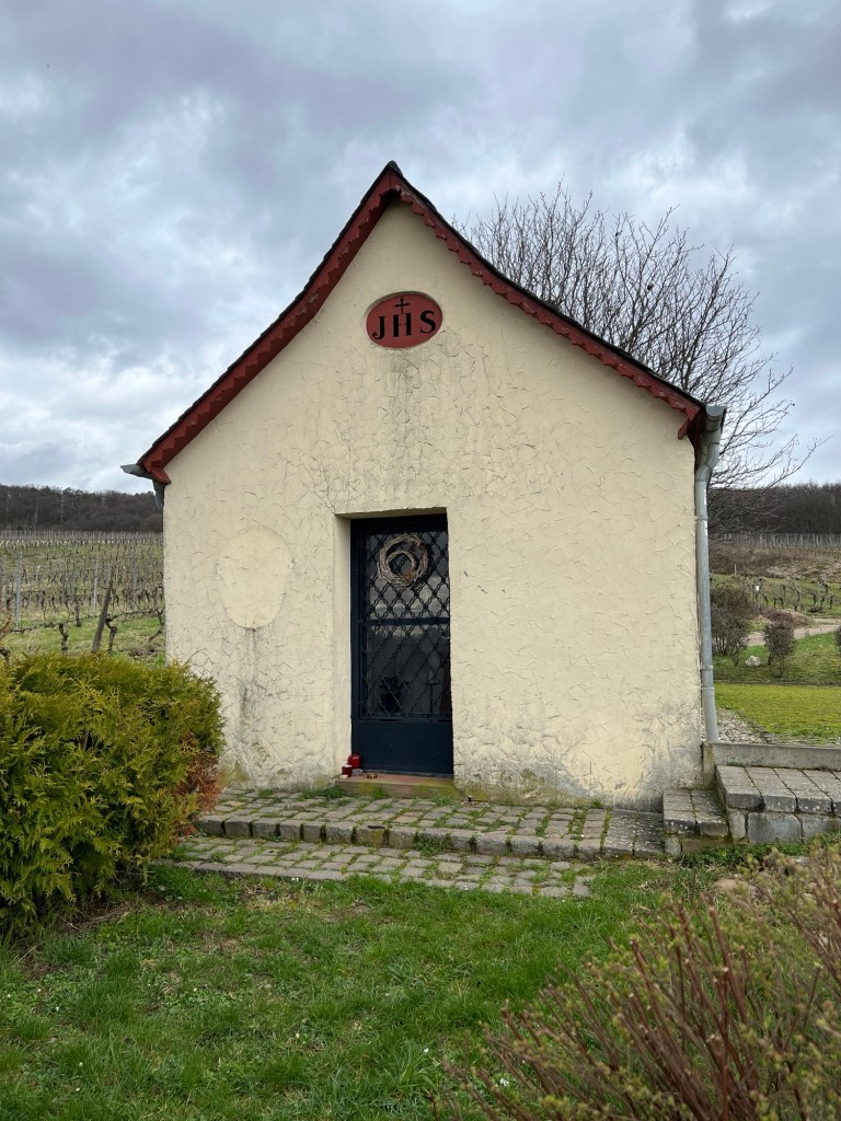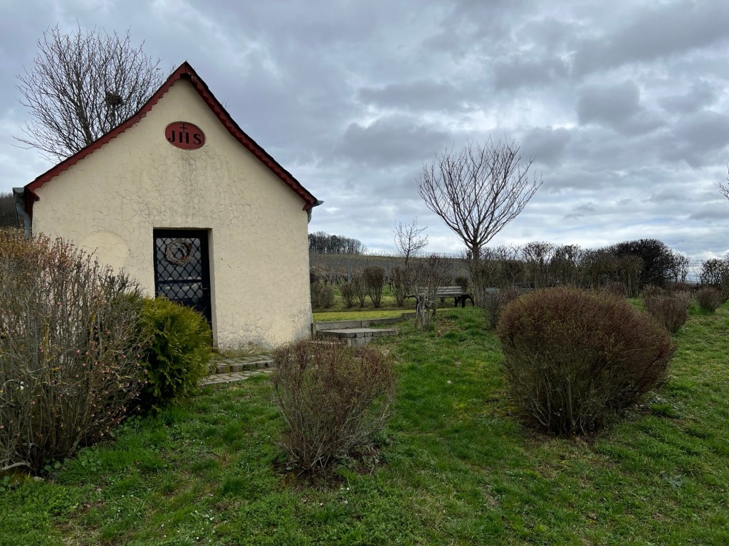 Vorbei an dem Hasloff-Brunnen, komme ich an einer kleinen Kapelle vorbei, der Rödchenkapelle, an der man auf der rechten Seite schön Rast machen und sitzen kann, denn hier stehen einige schöne Bänke und der Ausblick ist ganz nett.