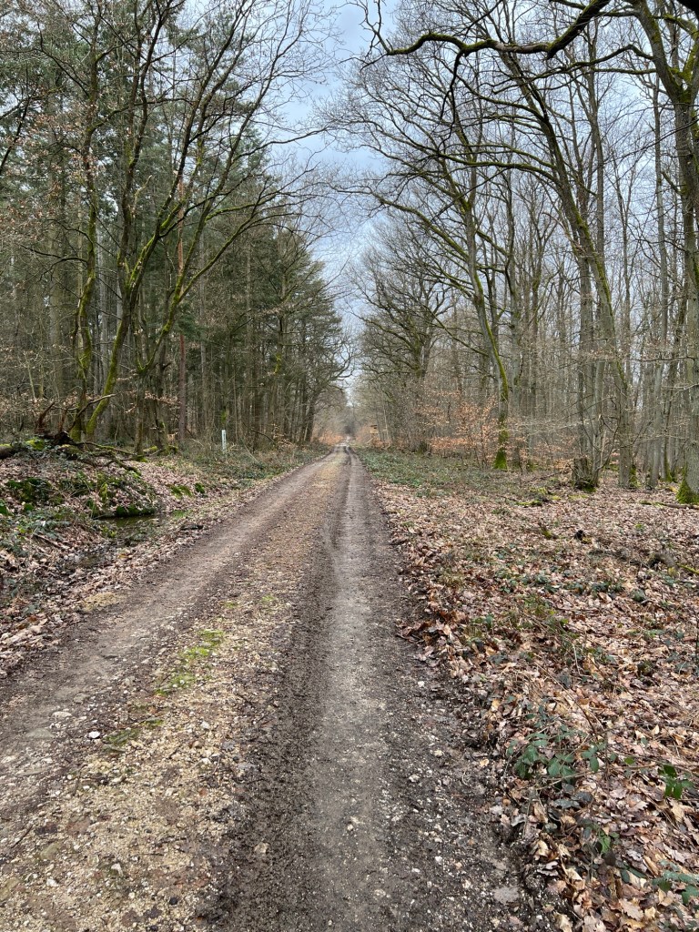 Schnurgerade laufe ich auf einem breiten Waldweg in den Taunus hinein, der Name Alleskönner Riesling erschließt sich mir hier leider gerade nicht.