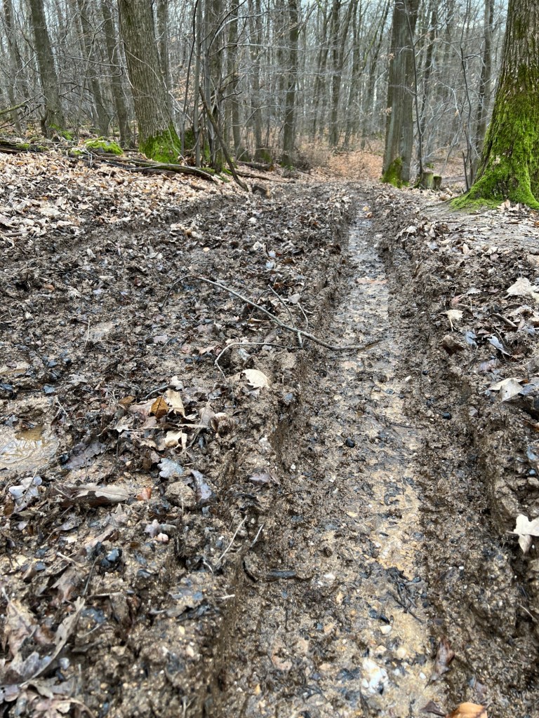 Kurz bevor man über den Waldweg, der nebenbei auch extrem matschig war heute, nach Frauenstein hinunter geht, zweigt der Weg links ab an einer Schutzhütte in den Wald nach Norden hinein.