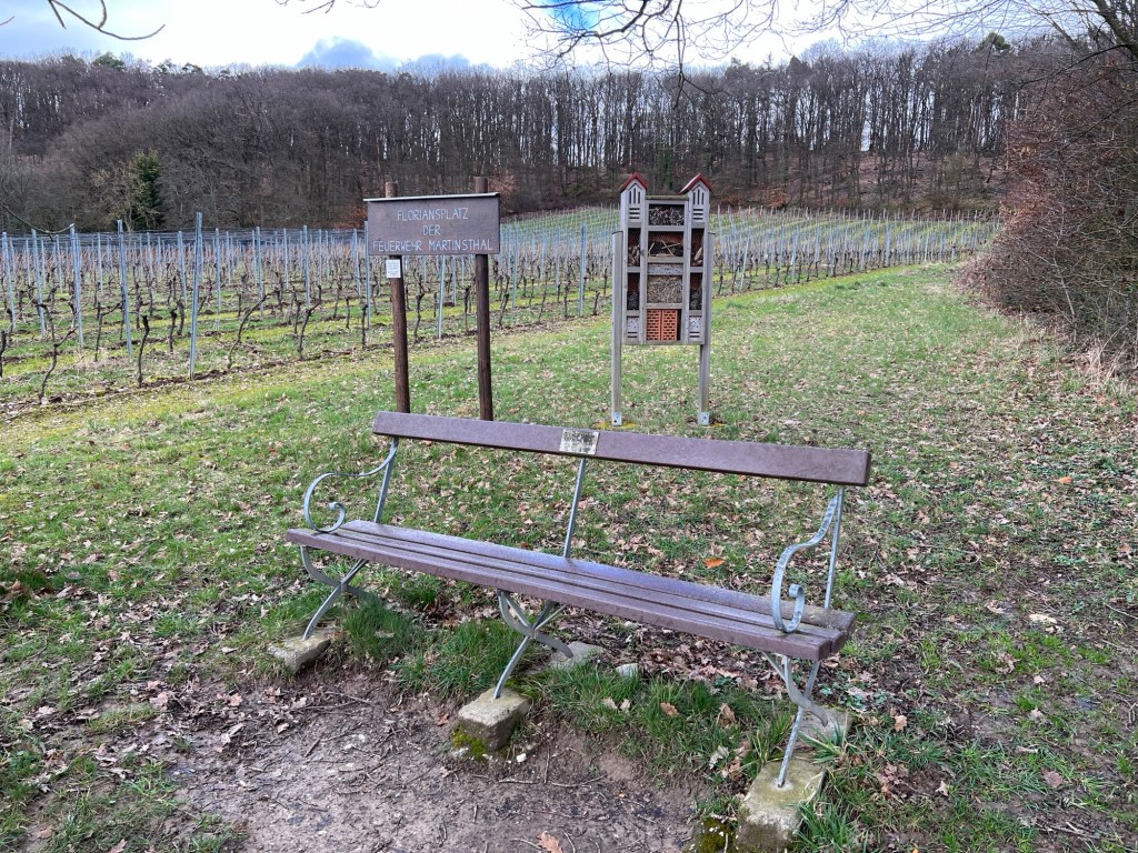 Vorbei am Florianplatz, wo einige Bänke zum ausruhen stehen, geht es für mich durch die Weinberge wieder zurück Richtung Martinsthal.