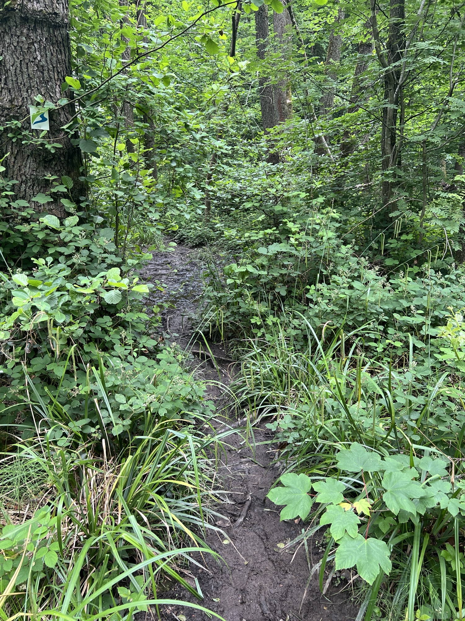 Ich stapfe über kleine, matschige Pfade, durchquere, einen kleinen Bach, steige einen kleinen Berg hinauf und komme dann am Forsthaus Neuhaus heraus.